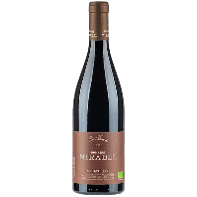 De biologisch bewerkte wijngaarden liggen aan de noordgrens van de appellation Pic Saint-Loup. De oorsprong van dit terroir is een geërodeerde gletsjer. Kort gezegd een geweldige bodem om hoge kwaliteitsdruiven te oogsten. De rode druiven die staan aangeplant zijn Syrah, Mourvèdre, Grenache, Cinsault en Carignan. Voor wit staat er Viognier en Roussanne. Bij Mirabel is alles gericht op topkwaliteit, de rendementen komen niet boven de 25 hectoliter per hectare. Verkoop op basis van toewijzing.